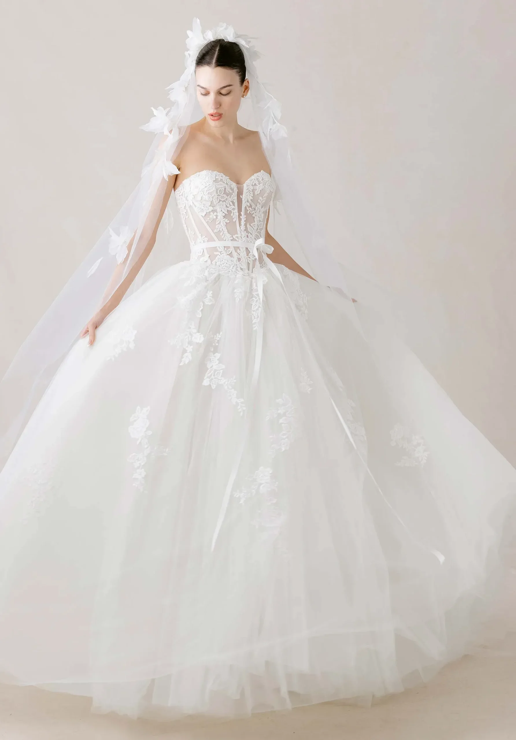 Morilee leads the way, with amazing silhouettes, dramatic backs and gorgeous trains to make a statement. Morilee’s intricate designs combine embellishment and lace like no other, including modest styles for those with a simpler style in mind. Delicate lace and tulle are at the heart of the designs, giving each gown a soft, romantic flair.
